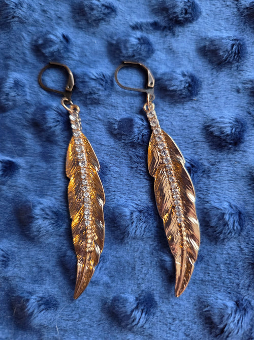 Crystal & Gold Leaf Dangle Earrings